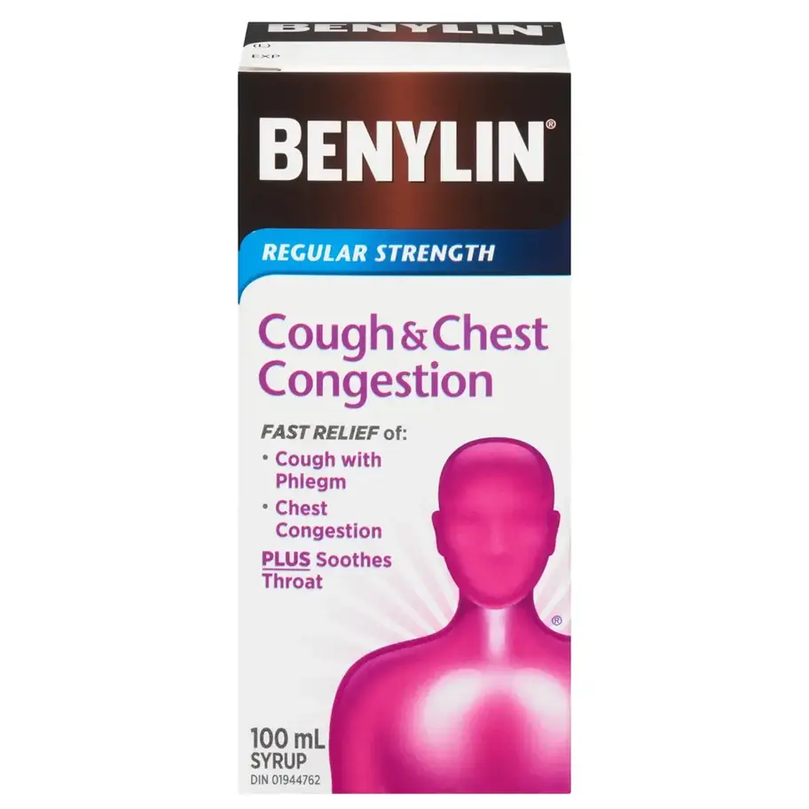 BENYLIN® COUGH & CHEST CONGESTION Syrup is specially formulated to work in your chest to help clear out heavy congestion while suppressing your cough. Its soothing properties help soothe your throat.