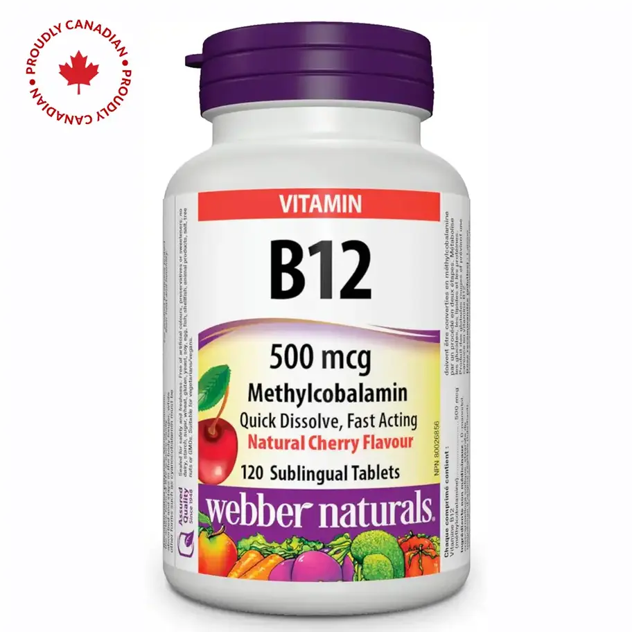 Webber Naturals Vitamin B12 500 mcg, 120 Tablets, Natural Cherry Flavour